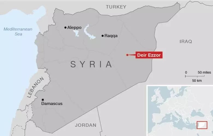 ▲叙利亚城市代尔祖尔地理位置示意图(CNN)