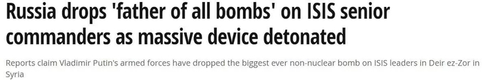 英媒称,俄罗斯军队据信向“伊斯兰国”组织(IS)的高层指挥官投下了“炸弹之父”(FOAB)。