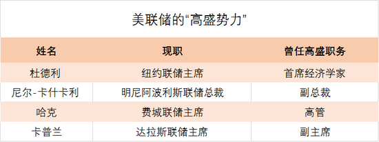 美联储由分布美国各地区的12个联邦储备银行组成,其中有4个地区的主席与高盛有渊源,这意味着,“高盛帮”占到了三分之一强。