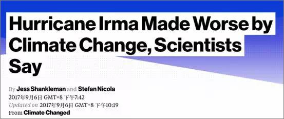 “飓风‘艾尔玛’袭击的区域海水温度过高,这使得飓风从海洋的温度中获得破坏性的能量。”