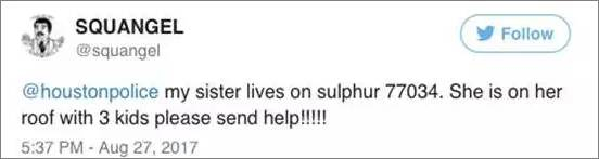 ▲ 我的妹妹住在sulphur 77034,她和她的三个孩子正在屋顶等待救援!!!