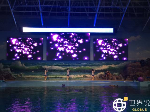 平壤海豚馆的表演让我感触颇深。由于我是外国人,朝方陪同人员与海豚馆工作人员在一番沟通后,由海豚馆工作人员带领直接来到了观众区第一排最中央的位置坐下,享受了一把VIP的待遇。没过多久,演出开始。最先是将近6、7分钟的爱国主义教育,介绍海豚馆是在两位伟大的大元帅的关怀下和敬爱的金正恩多次细心指导下建设成的,朝鲜人民一心团结在党的领导下辛福生活等等的内容。之后,正式演出才算开始。