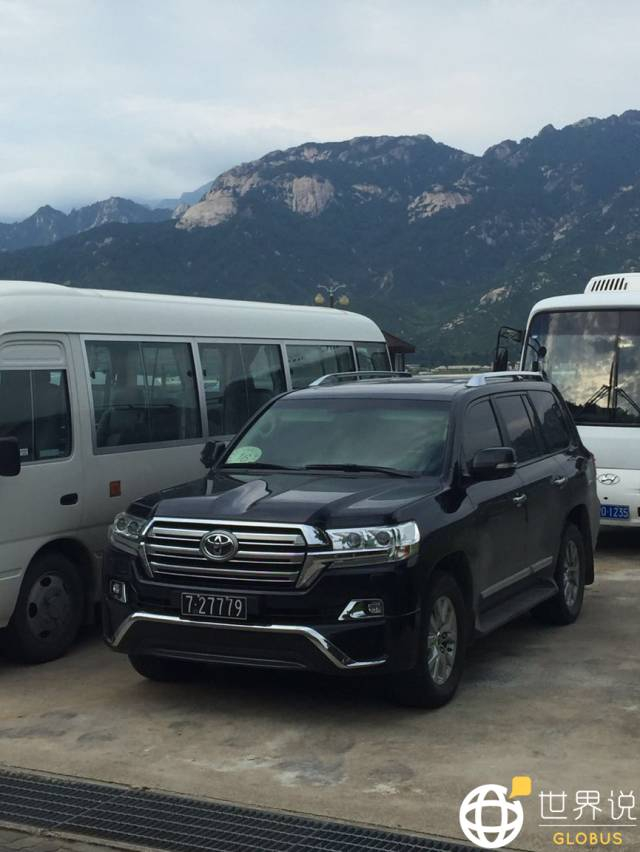 晚餐前还有一段时间,我们一行人纷纷来到停车场旁的休闲区稍作休息,忽然远处开来两台车,第一台是中东版的新款兰德酷路泽,后面跟随一辆丰田考斯特中巴,当开头的吉普车渐渐开进我们的视野时,大家的眼睛都目不转睛地关注着那辆车上人的一举一动,因为,那是辆悬挂“727”黑色车牌的特权车辆。