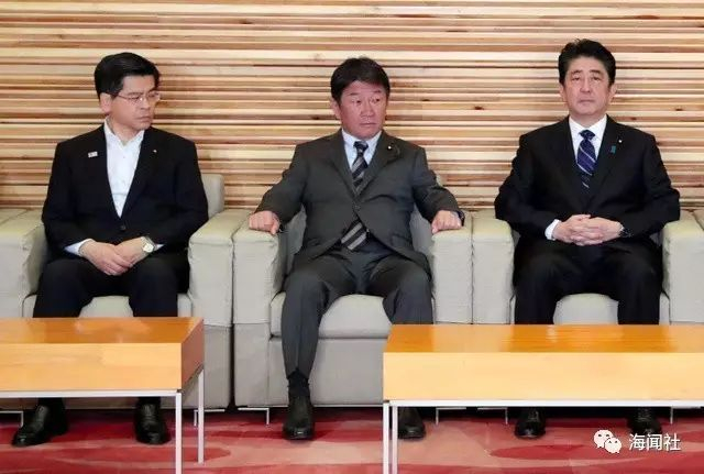 日本国土交通大臣石井启一(左)在12日的内阁会议上,右为首相安倍晋三。