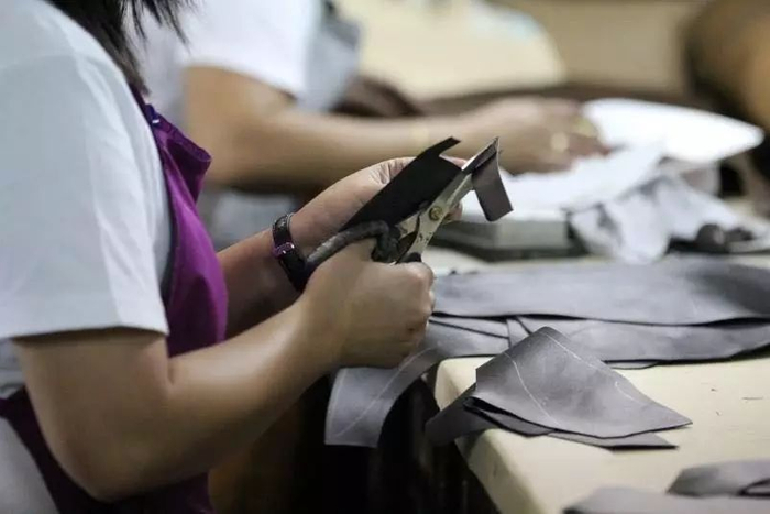 从每个人手上的工作可以看出,他们分工十分明确,有的人设计鞋型,有的人裁断制帮,有的人鞋底绷帮、还有的人帮底结合。