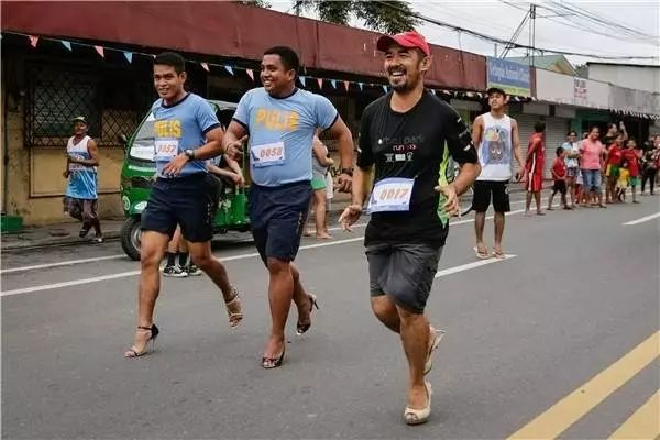 是的!你没看错,是穿着高跟鞋参加跑步比赛,这一活动非常具有本土特色。来自菲律宾全国各地的姑娘、小伙子们,穿着各种高跟鞋和特色服饰前来参赛。