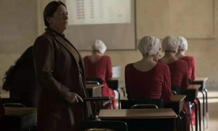 用一种有关却不同的说法讲 ,该剧集并非女性主义的:某处的某个种姓一律被致残,被视作“有两条腿的子宫”,而把这里视作地狱,这并非追求平等的极端方式。真正体现了平等,在于该作品活力四射,摩斯的表演力道、莉迪亚姑姑的复杂性格、女性友谊至上、女人团结、女人间相互同情以及因缺乏同情心引发的彻骨寒意……天啊,简单点说吧:这部剧是关于女人的,作为压迫者的男人是无关紧要的配角,你不得不承认,这殊为罕见。
