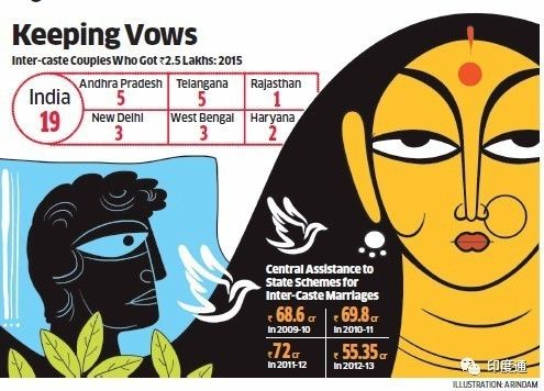 印度政府就有一项鼓励“跨种姓婚姻”的财政激励,许多邦都有施行,补助金额从₹5000~ ₹100,000不等。近年来,许多邦还加大了补贴力度。