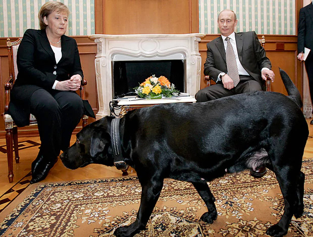 2007年,到访俄罗斯索契的默克尔与普京会晤,谈话间,普京的爱犬、黑毛闪亮的拉布拉多犬“科尼”突然闯进会场,默克尔当下神色有点发慌,虽然她很快恢复了自持风度。