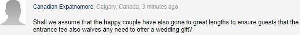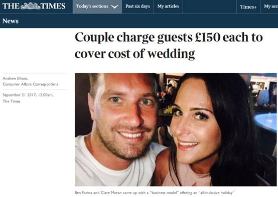 泰晤士报:参加婚礼要付150英镑(记者:已瞎)