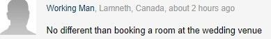 所以,假如宾客都不给这对小夫妻买礼物,然后穿着tshirt出席婚礼,他们实际上可以省不少钱,还能在四星级酒店住三晚呢。
