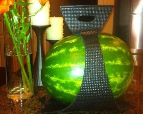 为了防止西瓜掉下桌子,有个哥们儿发明了这个hold住西瓜的架子(?)哥们儿打算卖332美元(?)融资目标是2.5万美元。。。