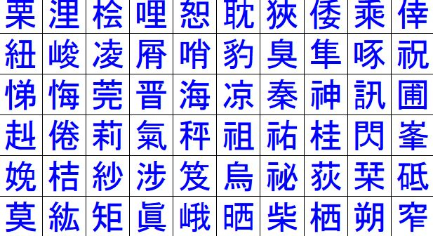 日本政府“认定”的常用汉字共有2136个,人名用汉字863个,简单的汉字有如“卜”、“勺”,也有复杂的如“飜”、“騷”’等。“田中”、“佐藤”、“我孫子”、“御手洗”等日本姓名也在上述日本政府认定的汉字库中。