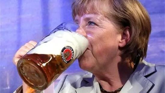 像普通德国人一样,默克尔喜欢喝啤酒,“豪饮”图片在网上随处可见
