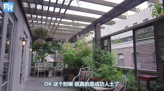 楼顶则是100多平米的户外阳台,还有自动灌溉设施。主持人这个时候由衷地说:住在这里,才是真正的成功人士啊。