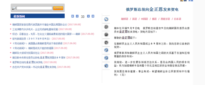 俄罗斯总统普京也在9月9日当天向金正恩致国庆贺电,贺电中说,加强俄朝双边关系,有利于整个东北亚地区的和平和稳定。贺电还称,“希望朝鲜全体公民享受和平与福利”。