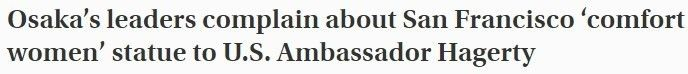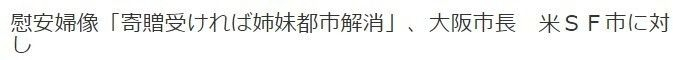 产经新闻:大阪市长:旧金山要是接受慰安妇雕像,大阪从此跟你绝交