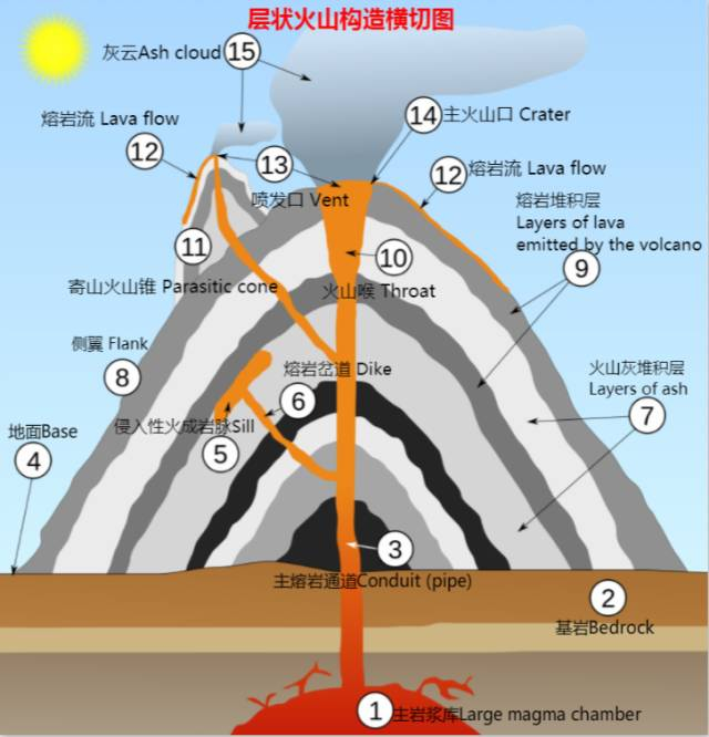 活火山(Active volcano):正在喷发或周期性、间隙性喷发的,叫活火山,全球约有500座左右;