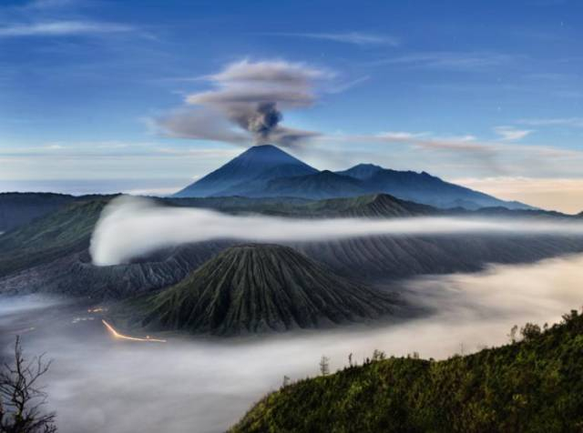 Mount Semeru is the highest volcano on the Indonesian island of Java and has been in a constant eruption since 1967。 It lies at the southern end of the Tengger caldera, which contains smaller volcanoes Mount Bromo and Mount Batok, and several others。