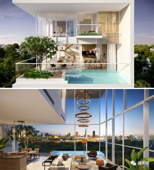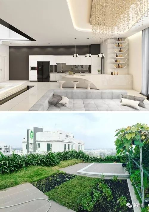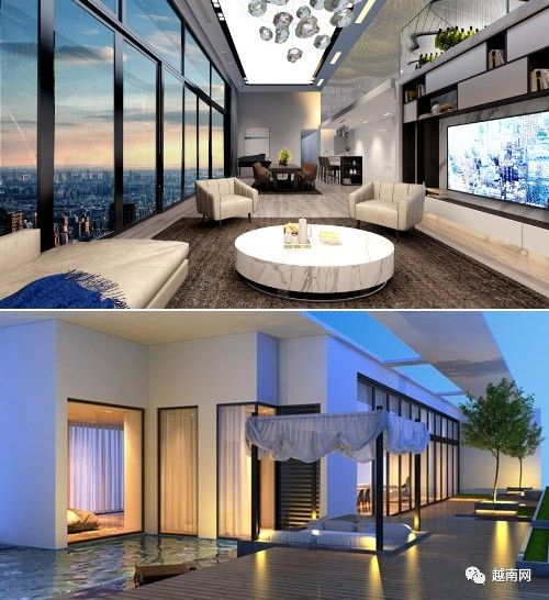 胡志明市:模特玉贞的住宅在第33,34层,总面积180㎡。屋顶是花园,种着各种树木和瓜果蔬菜。房价及装潢的费用共200亿越南盾。