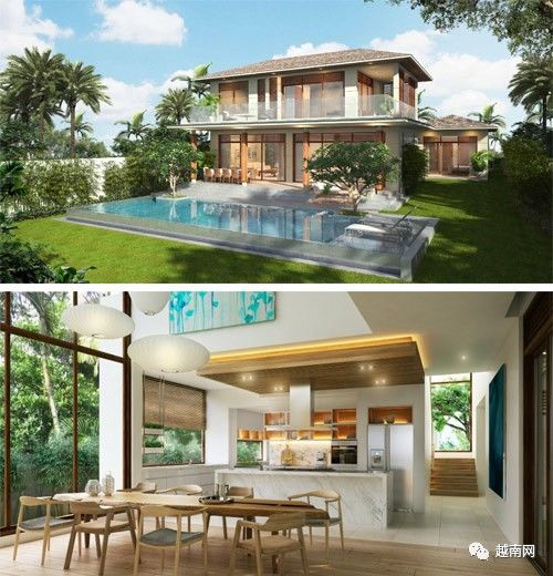 富国岛:富国岛上这家度假别墅售价160亿越南盾,装修风格现代化同时又亲近自然。不仅配备有宽敞的泳池和院落,屋主还能尽享餐厅,酒吧,健身房等设施带来的便利。