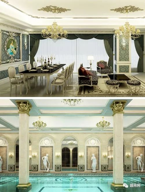 河内:纸桥郡有一处修在塔里的住宅,仿照欧式皇家风格建造而成。室内家具讲究,用料高级,一些细节之处还镀了金。室内附带公共游泳池。售价大约为1亿越南盾/㎡。