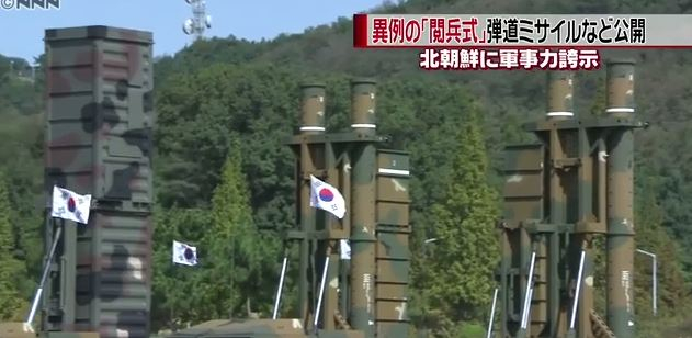 阅兵活动中亮相的战略武器有“玄武-2”系列弹道导弹、“玄武-3”巡航导弹、陆军战术导弹系统(ATACMS)地对地导弹、PAC-2型“爱国者”导弹、M-SAM中远程地对空导弹、“金牛座”和“斯拉姆-ER”远程空对地导弹等。