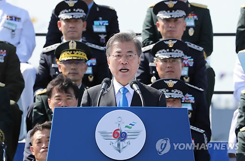 阅兵后,文在寅在致辞时表示,当前最要紧的是确保应对朝鲜核导威胁的能力,要求韩军尽快构建韩国型三轴体系。文还表示,韩国政府确立了基于自主国防力量尽早收回战时作战指挥权的目标,只有收回(现由驻韩美军掌握的)指挥权,才能让朝鲜更加畏惧韩国。
