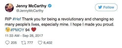 传奇的赫夫纳,愿你安息!能成为花花公子团队的一份子,我深感荣幸!我们会深深地思念你!爱你,赫夫纳!