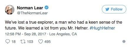 我们失去了一个真正的探险家,一个对未来有着敏锐感觉的人。赫夫纳,我们从你那里受益良多。