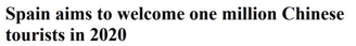 “西班牙目标是2020年接待100万中国游客到来”