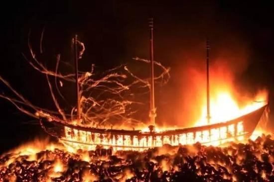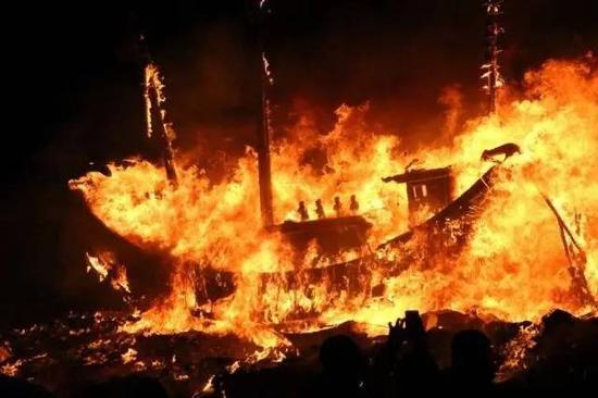 在很多有福建人聚落的东南亚地区,至今还保留着一种叫做“送王船”的祭祀活动。被点燃的“王船”在火海中噼啪作响,让人联想起福船在穿越狂风巨浪中的场景。