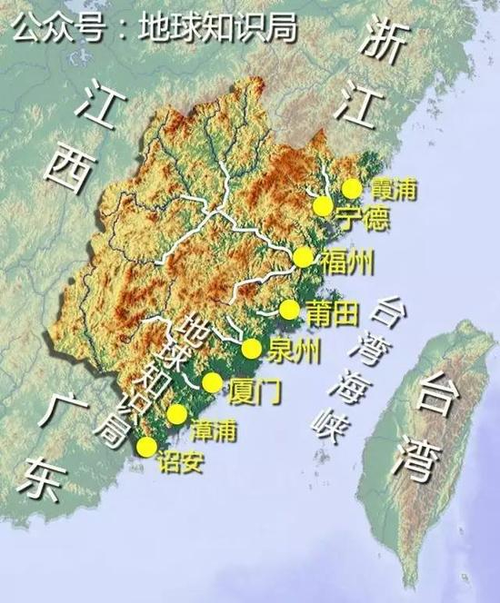 福建省简称闽,位于中国的东南沿海地区。全省地形以山地为主,丘陵山地面积约占土地总面积的90%。