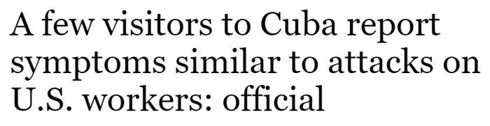 据美国国务院官员介绍,几位去古巴旅游的美国人也疑因遭到“声波攻击”而出现类似症状。