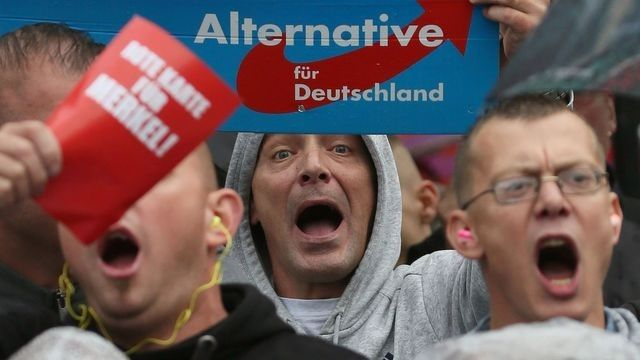 1。 竭力“去妖魔化”的极右政党?与有45年历史的法国国民阵线党不同的是,德国选项党还十分年轻,并且它目前在“极端化”的道路上走得还挺顺畅。这个民族主义保守政党越来越向极右翼倾斜:例如,前任党主席佩特里(Frauke Petry)曾试图与党内的极端民粹主义者霍克划清界线,但选项党最终决定保留后者党籍。德国《明镜周刊》分析称,在93个有可能赢得议会席位的选项党候选人中,有35人属于极右翼。