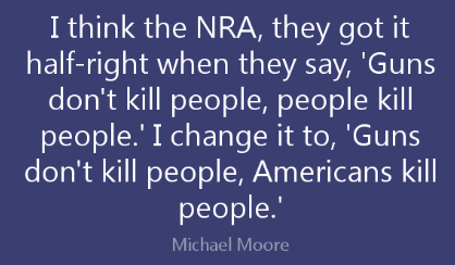 美国长枪协会 (National Rifle Association, NRA) 的最著名口号就是:“人在杀人,不是枪在杀人!”拥枪派常见的观点有:“现在很多恐怖分子用大货车杀人,法国尼斯恐怖分子有汽车杀死近一百人,撞伤无数…是不是我们把大货车也禁了?911 恐怖分子用飞机杀人,禁飞机吗?波士顿马拉松恐怖分子是用高压锅改装的炸弹杀人,禁高压锅?”