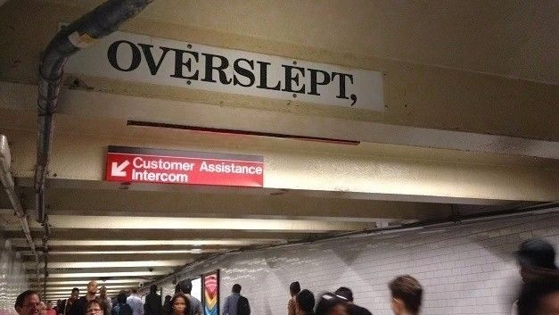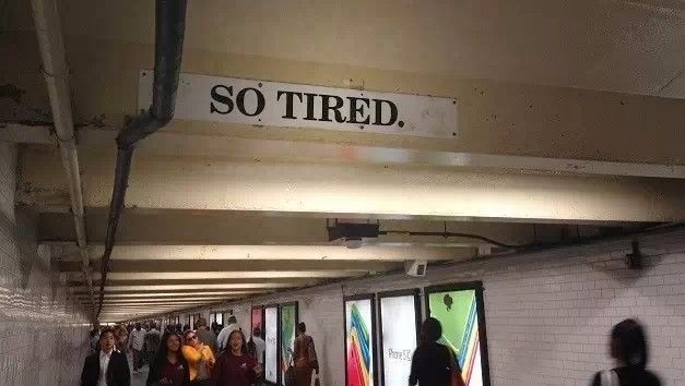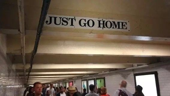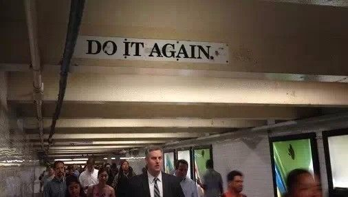 再比如时代广场站里有一段长长的地下通道,每走几步你都会看到头顶的横梁上写着几个莫名其妙的句子。等你走完这条通道,把所有的句子连在一起读了一遍才恍然大悟,原来这是一首诗。
