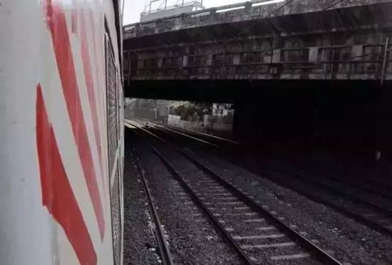 印度的铁轨,一种神奇的腐朽,枕木都烂了。火车开动时,很多人也是把身子探在外面。