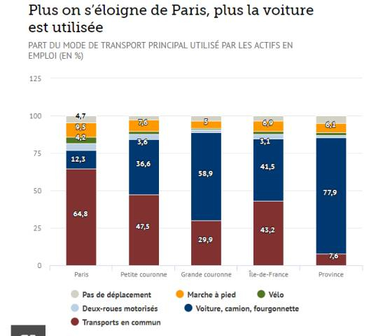 在巴黎市区,仅12.3%的人使用汽车通勤,64.8%使用公共交通工具。但在大巴黎之外的其他地区,汽车使用率高达77.9%。(图片来源:费加罗报)