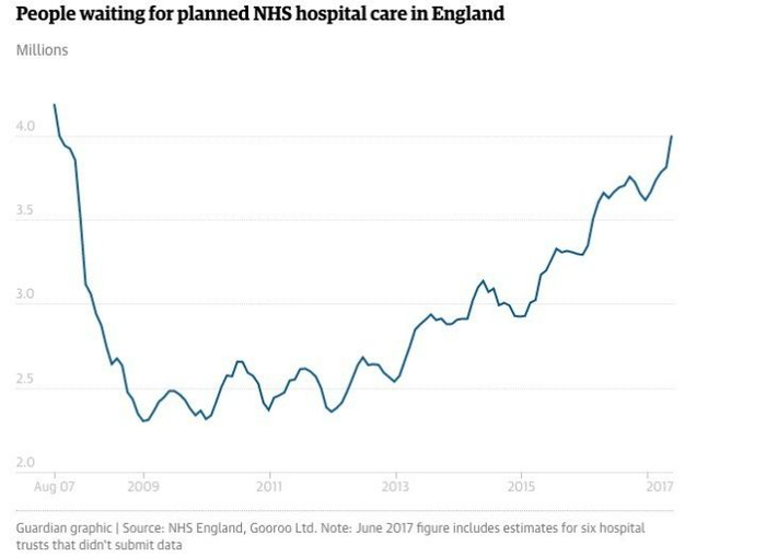 据英国《卫报》报道,今年8月,等待进入英国医院接受手术治疗的患者超过400万,达到十年来最高水平。