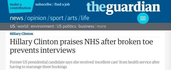 或许,希拉里对NHS的赞赏只是说给特朗普听的。