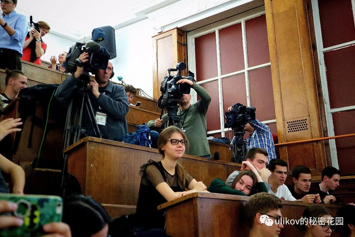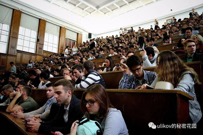 演讲原定于莫斯科时间下午3点进行,而从下午1点开始,参与听讲的莫大学生们就提前排起了长队。