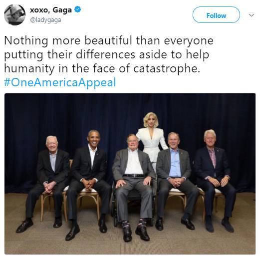 实际上,早在9月“哈维”肆掠之后,5人便联合发起了一个叫“One America Appeal”的公益项目,用于受飓风影响地区的灾后重建。