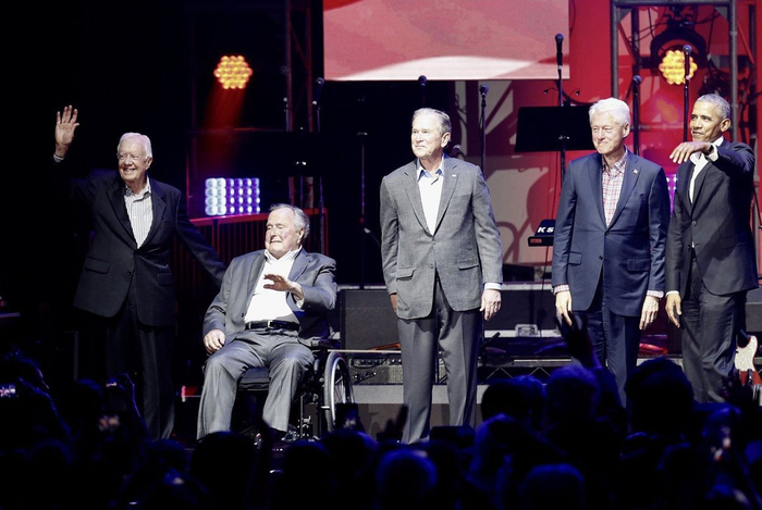 要知道,集齐他们5位可是是相当不容易的。作为5位仍在世的美国前总统,他们虽早已卸下重担,但各自的日程安排其实都还挺满的。
