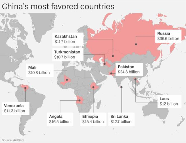 △ CNN根据AidData报告制作的“中国最青睐的受援国”地图