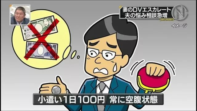 在日本某节目中,男人称一天只有100日元(约6元人民币)的零花钱,中午常常饿肚子。