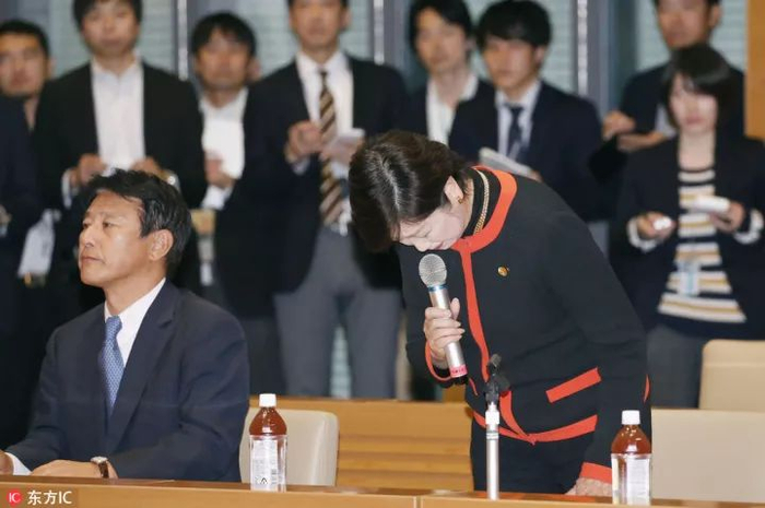 当地时间2017年10月25日,日本东京,日本“希望之党”党首、东京都知事小池百合子当天在国会内召开的该党两院议员座谈会上,就众院选举中党势不振鞠躬道歉。 (图/@东方IC)