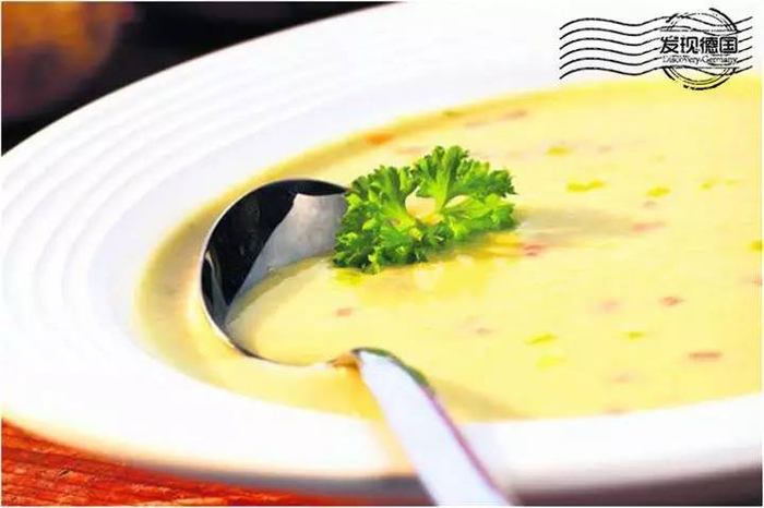 德文称喝汤为“吃”汤,因为德国人从不把汤盘端起来喝,而是用勺子逐次送到嘴里“吃”。