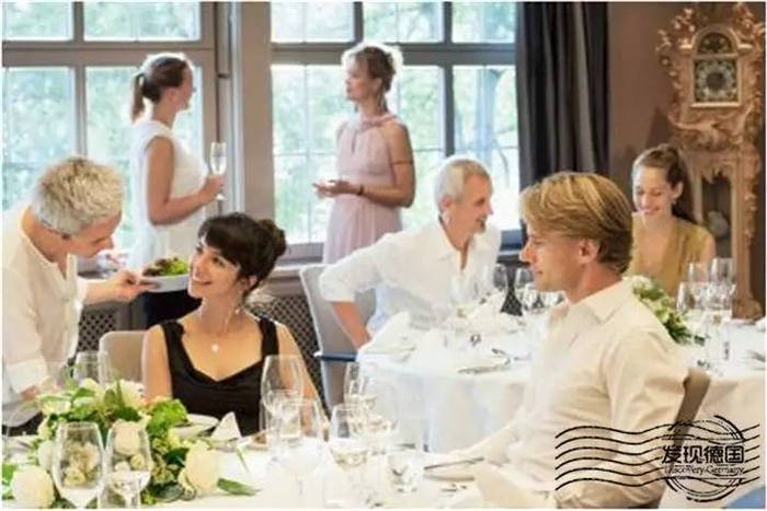 在德国人的观念中,宴会即社交。令主人最难堪的不是碰翻酒杯或者刀叉掉落一地,而是面对埋头吃喝不吭一响的客人。(前者大家哈哈一笑就过去了)