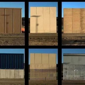 鉴于美国政府对隔离墙的“颜值”也有要求,即墙体面向美国境内的一侧要“颜色美观”,4款非混凝土结构的“样板墙”争相“出彩”。其中一款“样板墙”上方三分之二的部分采用蓝色铁板建成,其余部分用白色材料“装点”,顶部装有深蓝色横梁。还有一款“样板墙”用不同形状的灰色砖瓦建成,顶部是装有金属尖刺的钢板。还有两款墙体融入了透视设计。